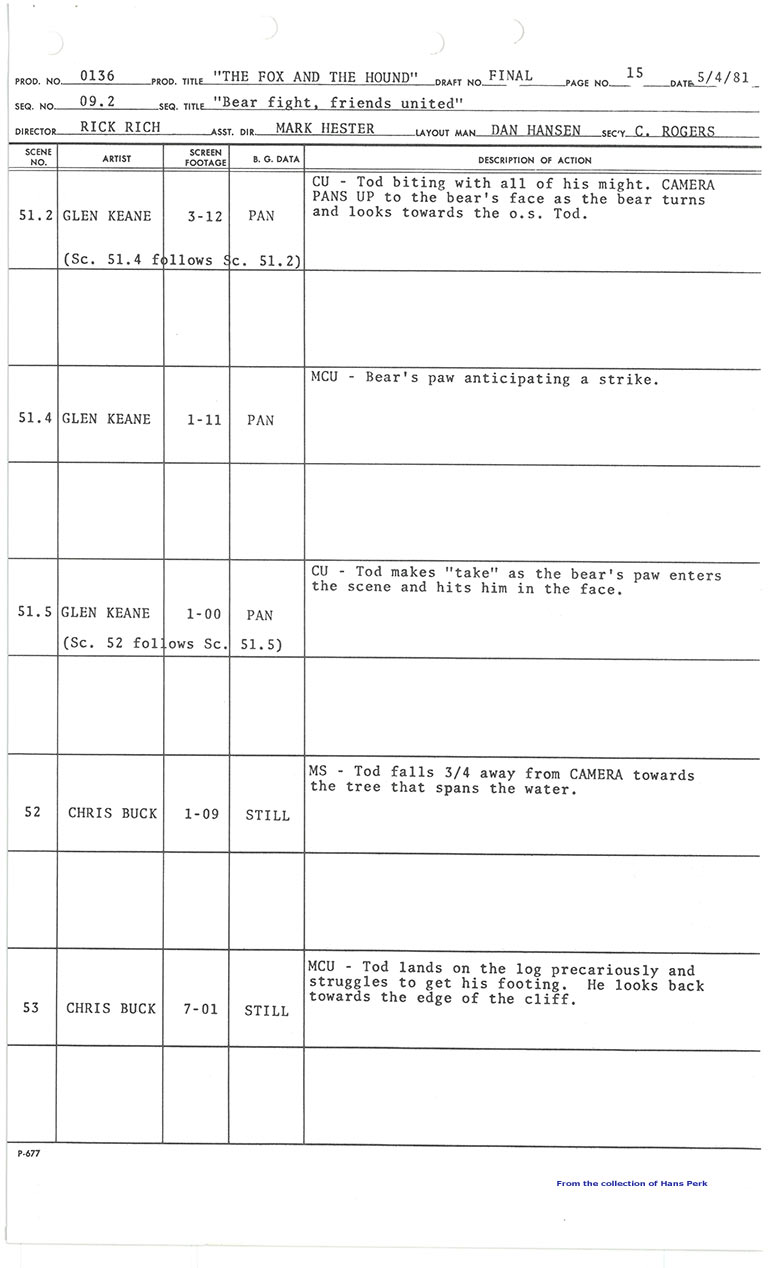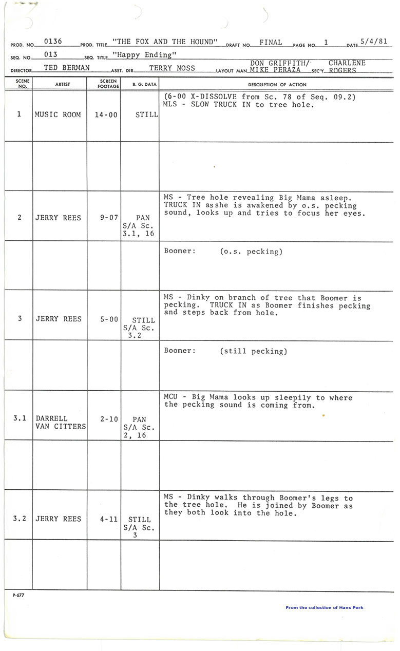 - Assistant Animator: DISNEY 31 (Silly Symphony 31 [The Fox Hunt, The Ugly Duckling], Mickey Mouse 31-32 [The Duck Hunt 32, The Mad Dog 32])