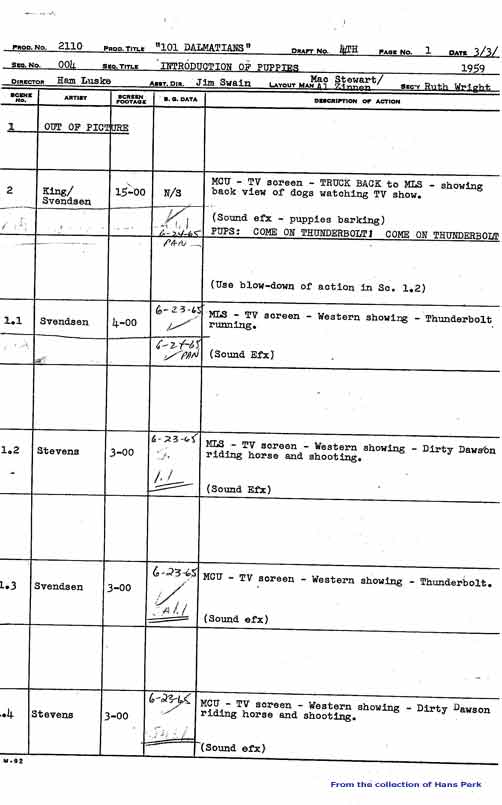 Ah, a favorite sequence of mine. I would have loved to have worked on this stuff, but I got drafted into the US military when "Dalmatians" got under way. I did get back in time to work on the ending of the movie.