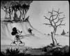 It is interesting to look at details in this picture! Here we see on the left the background that Manriquez is holding - on the right a frame grab from scene 2 of the Mickey Mouse short CM-13 The Moose Hunt (rel. 5/8/31), as animated by Dave Hand.