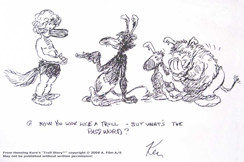 Before we started A. Film, we worked for nearly a year on preproduction of Henning Kure's "Troll Story™", in 1987. It was a very exciting period, as we worked closely together with Frank Thomas and Ollie Johnston - who wrote in Flintridge, and faxed us nearly every other day, and came to Denmark twice for lengthy meetings. They had help from Ken Anderson, who told them he loved working on our project. Ken did a stack of drawings, partly his own ideas, partly inspired by Frank and Ollie.