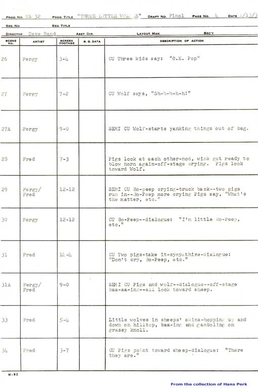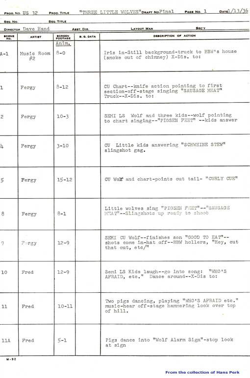 Directed by Dave Hand, assistant director Jack Cutting, story by Bill Cottrell, Joe Grant and Bob Kuwahara (Feb. 1934-May 1935 - Outline 4/10/1934). Music by Frank Churchill. Layout by Ferdinand Huszti Horvath, backgrounds by Mique Nelson and animation by Norm Ferguson, Fred Moore, Eric Larson and Bill Roberts.