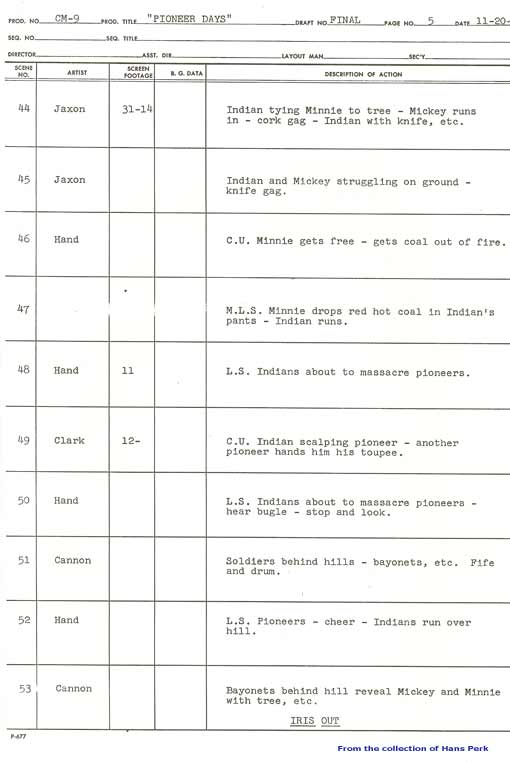 This draft interestingly shows the animators AND the effects animators and their respective footage, as on the features - compare with Pinocchio. We see animation by Nick DeTolly, Judge Whitaker, Jim Armstrong, George Goepper, Ken Muse, Lee Morehouse, Volus Jones, Emery Hawkins, Johnny Cannon (his last Disney credit according to