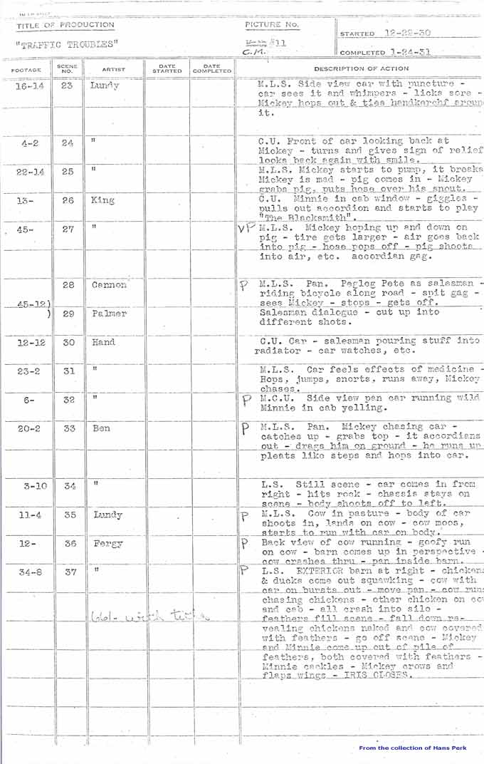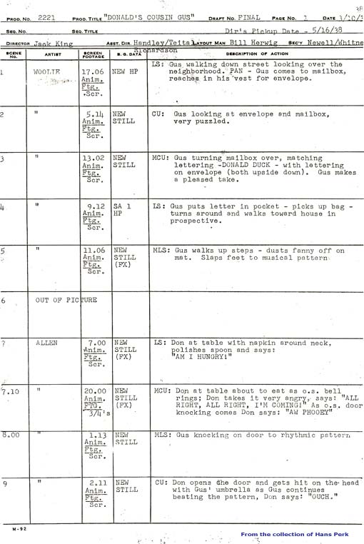 What the scene did smell of was most probably Walt Disney's acting out the affair to the film's director Burt Gillett. Directors like Hand and Gillett "sold" their animators on the scene by acting out "things" the way Walt did. Guys like Sharpsteen, Gillett and Ferguson came to Walt Disney's small studio with years of animation experience behind them. Young Wilfred Jaxon was a Glendale born greenhorn with a natural talent and his animation stood up well next to theirs.