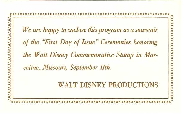 Here is the invitation for the ceremony with extras, and the back of the program features Walt's own article "The Marceline I Knew" from the 9/2/38 Golden Jubilee edition of the Marceline News...