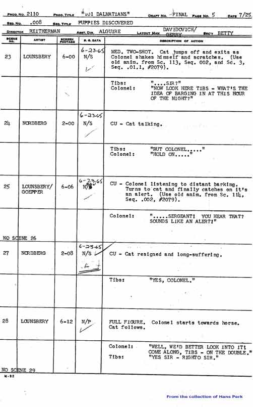 Ah, this is one of my favorite scenes in the movie. The gab between the Colonel, Captain & Sgt. Tibs always get me, & after all these years of wondering, I finally know who animated them. Thanks again, Hans!
