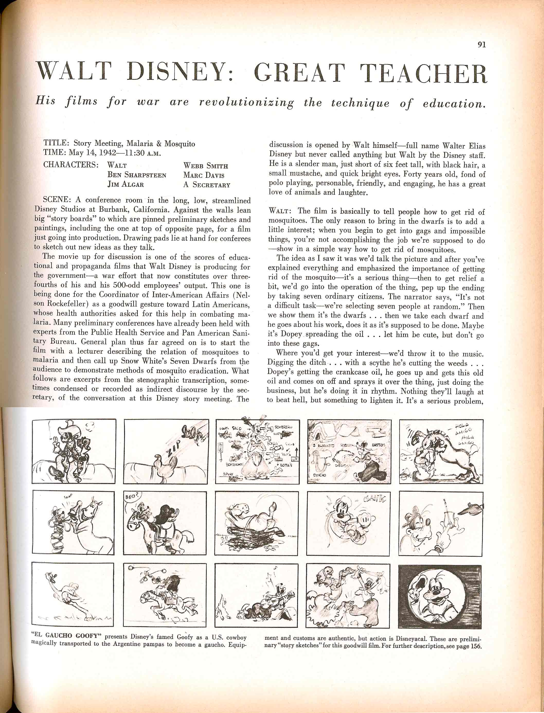 When Walt wired reports of this back to Roy Disney on the West Coast, a system was devised to give the conductor a visual aid: a bouncing ball was drawn in the side of the film, in the sound track area. As Walt said later, in a 1963 CBC interview: "We had a little thing, a little ball that went up and down... and they were all musicians working for me, see, and they would follow this thing, and they would go AAH! or they would go BENG! or they would pop one of those pop guns. And it would always fit!"