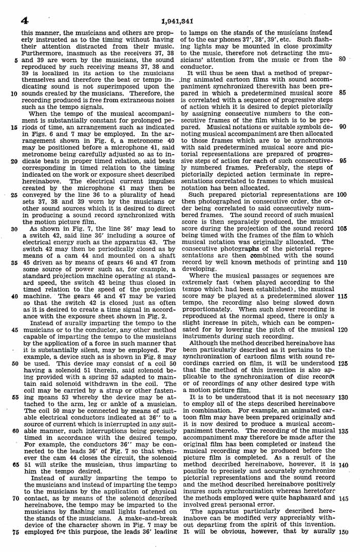 one of the most universally used devices in the world of cinema: the Click Track! The patent, which outlines the history, as well, was applied for in the name of engineer Bill Garity, who had several patents to his name already, for vacuum tubes and the like, from before he came to work at Disney's Studio. The click track has often been ascribed to Ub Iwerks, but he left the studio several months before this patent application, so who knows...