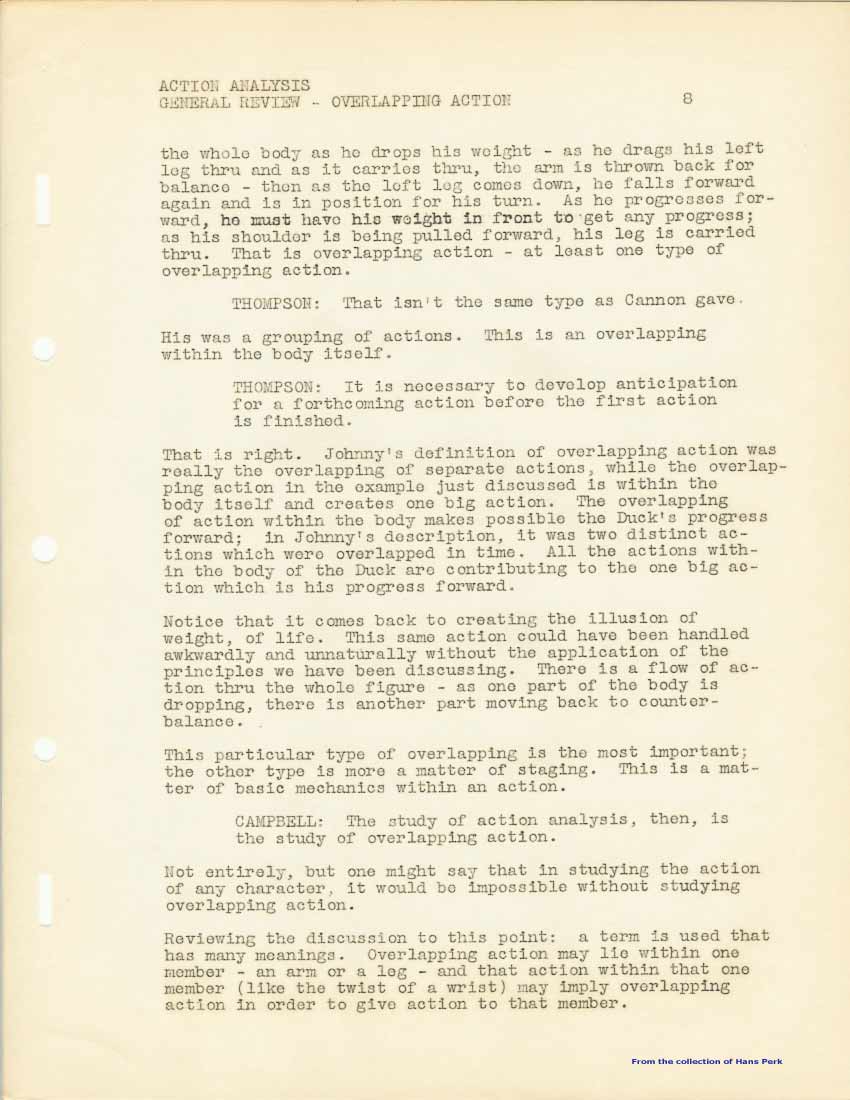 Johnny Cannon pantomimes overlapping actions, and we hear from George Goepper, Jack Hannah, Jack Campbell, Paul Allen, Riley Thompson, Jim Algar and Bill Shull.