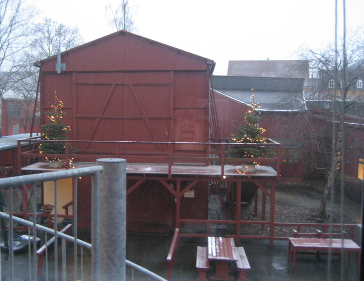 Of the other three original stages of the mid 1910's (3, 4 and 5), only Stage 4 is left. This was the dance stage at this year's Christmas party! The smaller Stage 3 was replaced by a much larger stage of the same name/number in the early 70's (our Christmas party's dining room and the stage of most of Nordisk Film's indoor shoots and TV shows of the last 40 years), while Stage 5 bit the dust only a few years ago when a new multistory Media building, which also includes the executive offices, was erected.