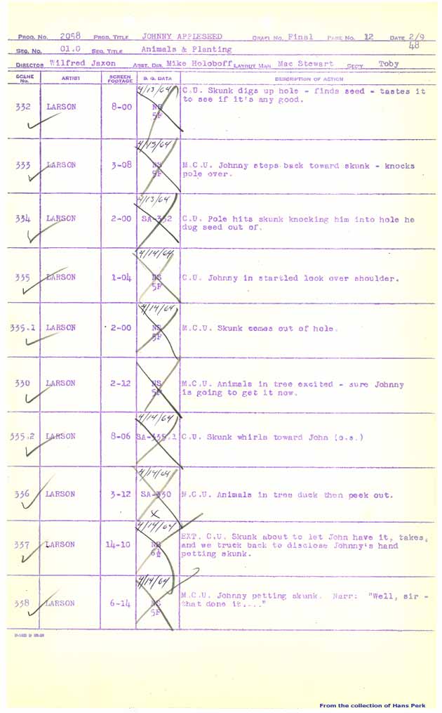 Directed by Wilfred Jackson, assistant director Mike Holoboff, layout by MacLaren Stewart. This FINAL draft is from 2/9/48.