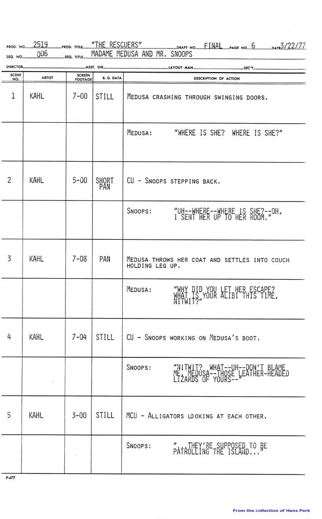 By the way, I do have a draft for this film, but it is sadly very incomplete and all I remember is that the beginning of this film was animated by Hal King.