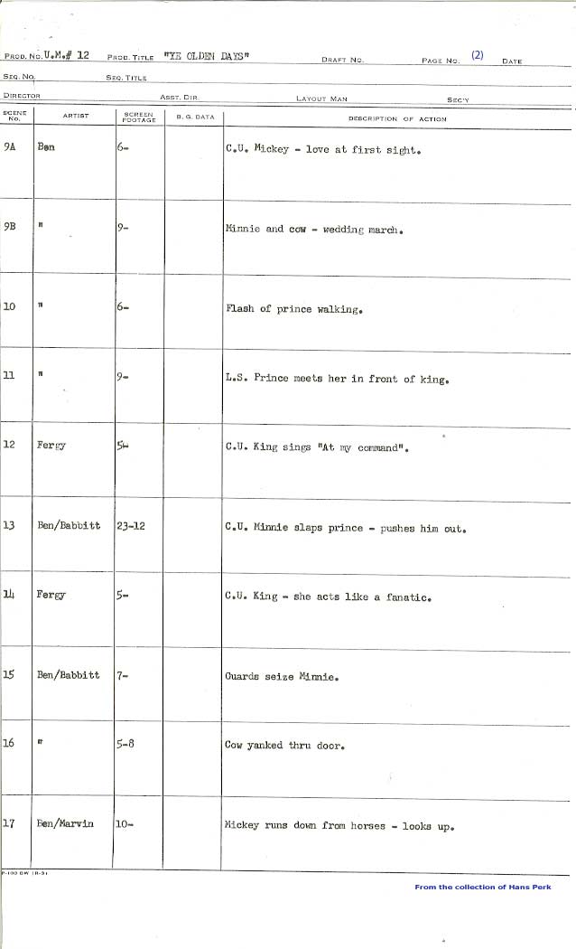 Sharpsteen was in charge of the up-and-coming animators in this period, which is why so many scenes bear his name. As an example, scene 21 has only his name indicated, but we have seen recently that it was animated by Ed Love. Only with access to more documents like this animation layout can we find the actual credits for Ben's scenes. [Addition:] Seconds ago I was thumbing through the Layout & Background book in the Archives series, and here I see that scene 11 is by "Ben/[Harry ]Reeves, while the layout for scene 33B has "Ben/[Jack ]Kinney" written on it!